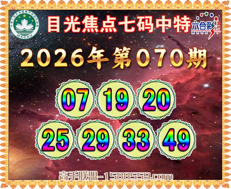 070期: 🍕『目光焦点』 🍕七码中特🍕【07.19.20.25.29.33.49】开:25