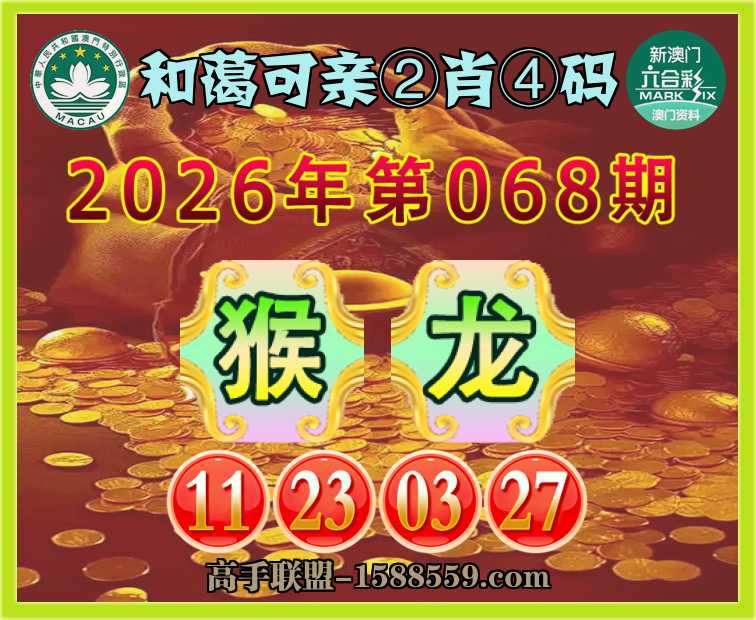 068期: 🍖《和蔼可亲》 🍖②肖④码🍖【龙】【11.23.03.27】开:猴23