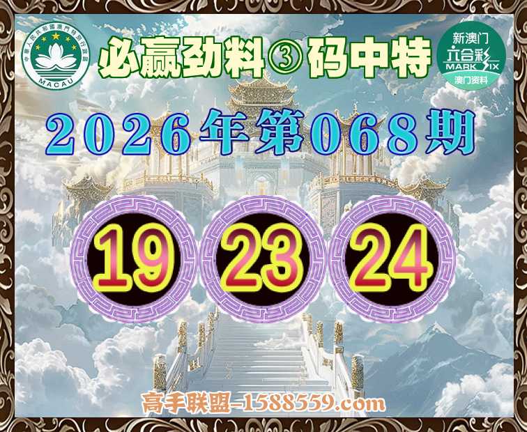 068期:《必赢劲料》 🎯③码中特🎯【19.23.24】开:23